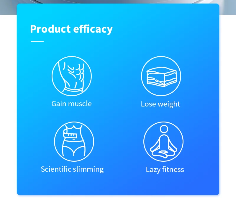 how to use? Two applicators are placed on the target muscle area, such as your abs, thighs, or buttocks. The applicators then generates intense electromagnetic that causes involuntary muscle contractions. These contractions trigger the release of free fatty acids, which break down fat deposits and increase muscular tone and strength, similar to the way doing workout. The muscle is forced to remain in contracted state for multiple seconds. When repeatedly exposed to these high load conditions the muscle tissue is stressed and is forced to adapt. Recent studies reported that on average 13% - 18% increase in abdominal muscle thickness was observed in treated patients one to two months after treatments 1、It’s safe and non-invasive, non-current, non-hyperthermia, and non-radiation, and no recovery period. 2、No knife, no injection, no medicine, no exercise, no diet, Just Lying down can burn fat and build muscle, and reshape the beauty of lines. 3、Saving time and effort, only lying down for 30 minutes = 20000 muscle contractions (equivalent to 20000 belly rolls / squats) 4、It’s simple operation and bandage type. The operating head only needs to be placed on the operating part of the guest, and it can be reinforced with a special equipment band, without the need for a beautician to operate the instrument, which is convenient and simple. 5、There are sufficient experimental studies to prove that the treatment effect is remarkable. It only takes 4 treatments within two weeks, and every half an hour, you can see the effect of reshaping the lines in the treatment site.
